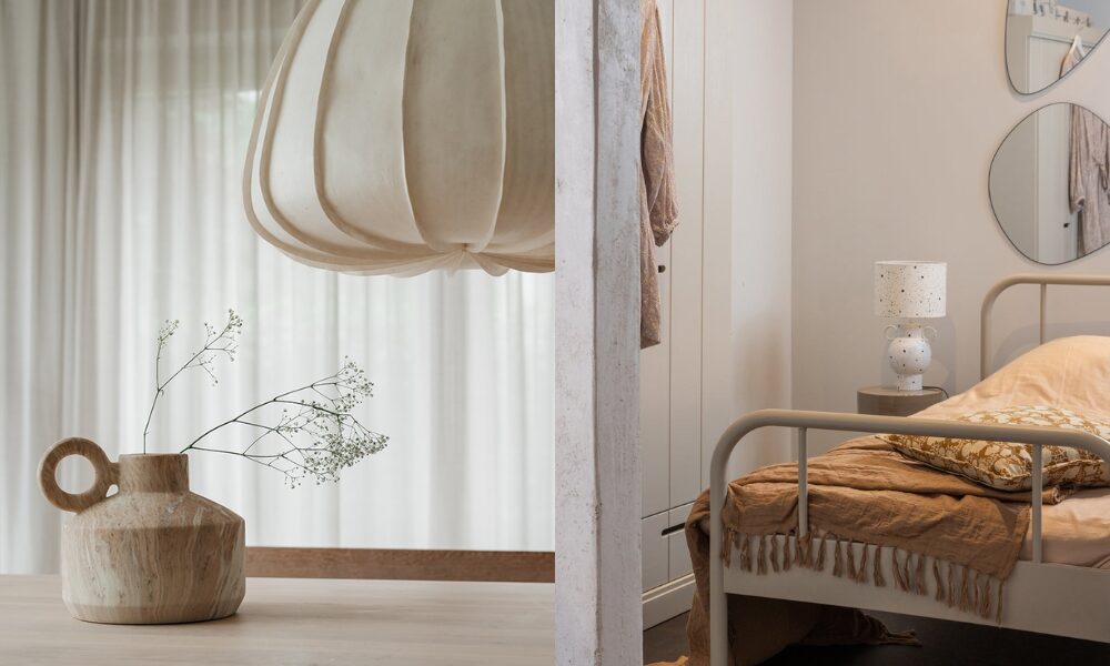 - Werk met materialen: hout, linnen, wol en keramiek versterken de zachte uitstraling van Greige, hiermee maak je je interieur niet alleen verassend, maar creëer je ook diepte en sfeer.
