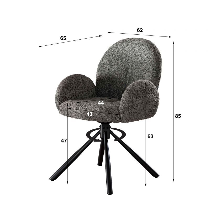 Deze armstoel ‘rondo boucle’ is uitgevoerd met een metalen draaiframe en een bouclé stoffering. De stoel heeft een super comfortabele zit en wordt uitgevoerd in 3 verschillende kleuren. De stoel wordt per 2 stuks verpakt.