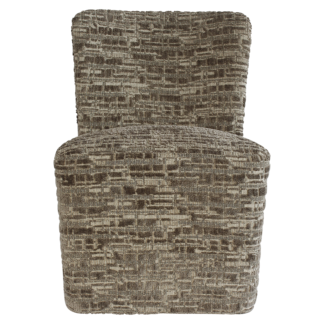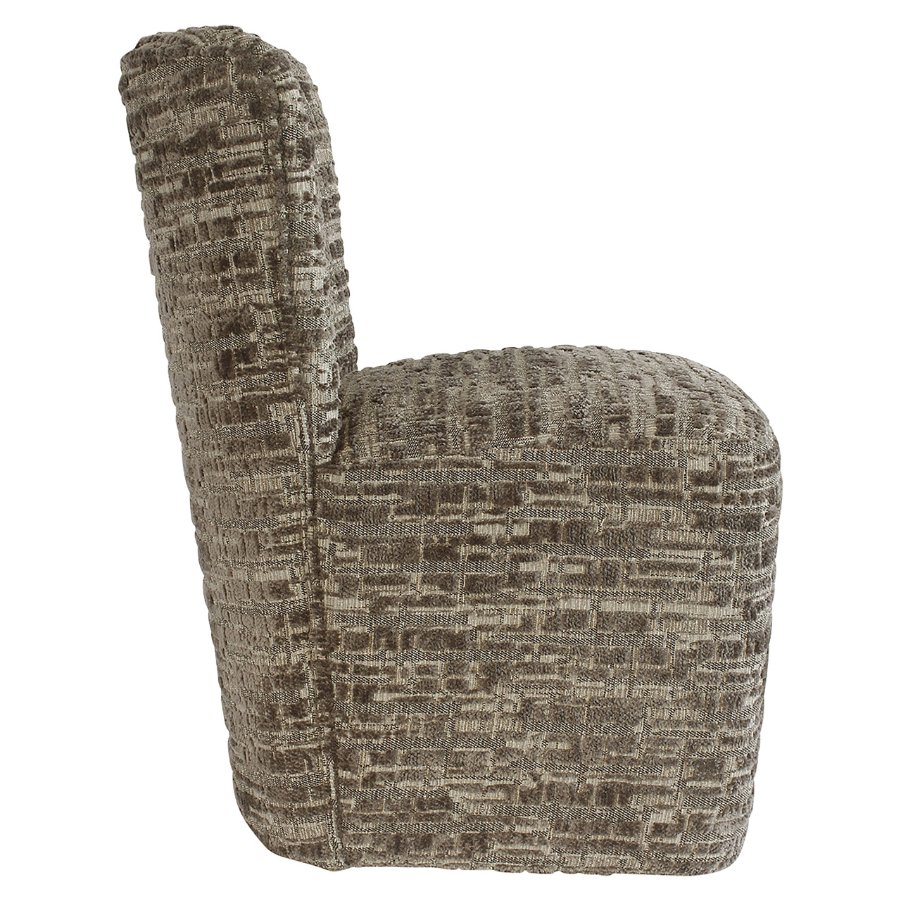 Stoel Lorain met wieltjes in greige dalia combineert zachte tinten met praktische wieltjes en een elegant silhouet voor een verfijnde, veelzijdige look.