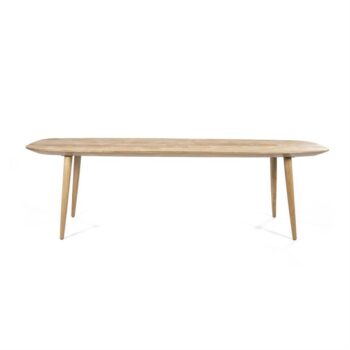 Eettafel Tabassum van Eleonora is echt een prachtig exemplaar en past zeer goed in een scandinvische woonstijl. De tafel Tabassum is gemaakt van van gerecycled teakhout. Het tafelblad heeft eeen deens ovale vorm. De poten staan wat meer naar binnen waardoor het gemakkelijk stoelen plaatsen is rondom de tafel. Ideaal als er meer mensen aan tafel zitten. H