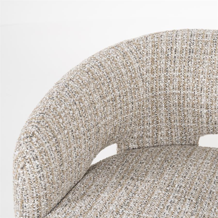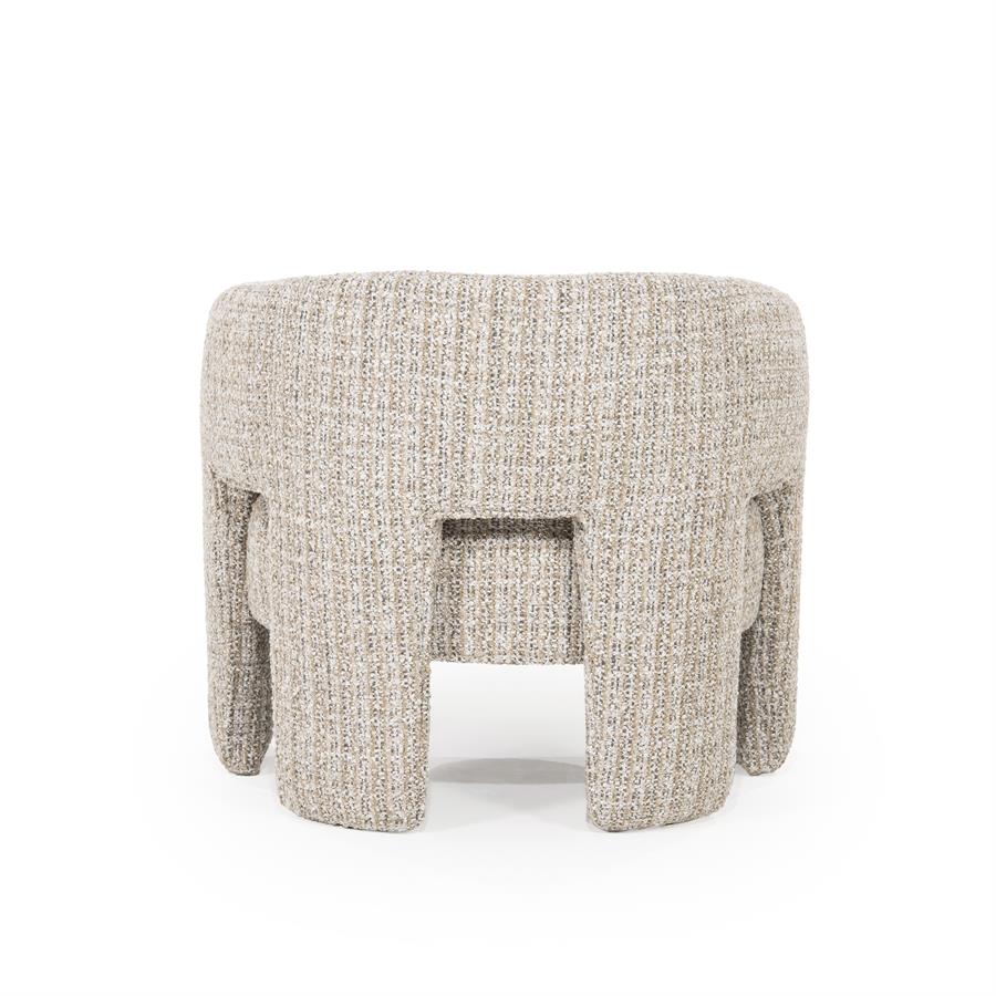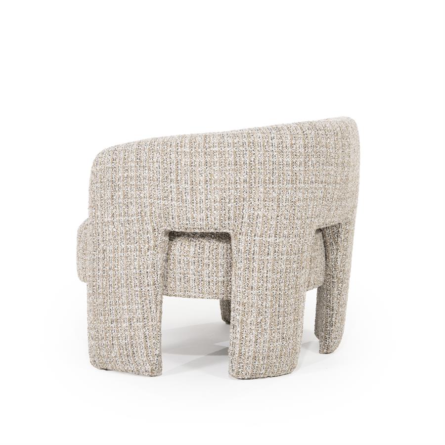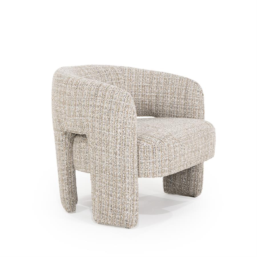 De fauteuil Hamilton van Eleonora is uitgevoerd grove bouclé bekleding en verkrijgbaar in de kleuren Taupe en Beige.