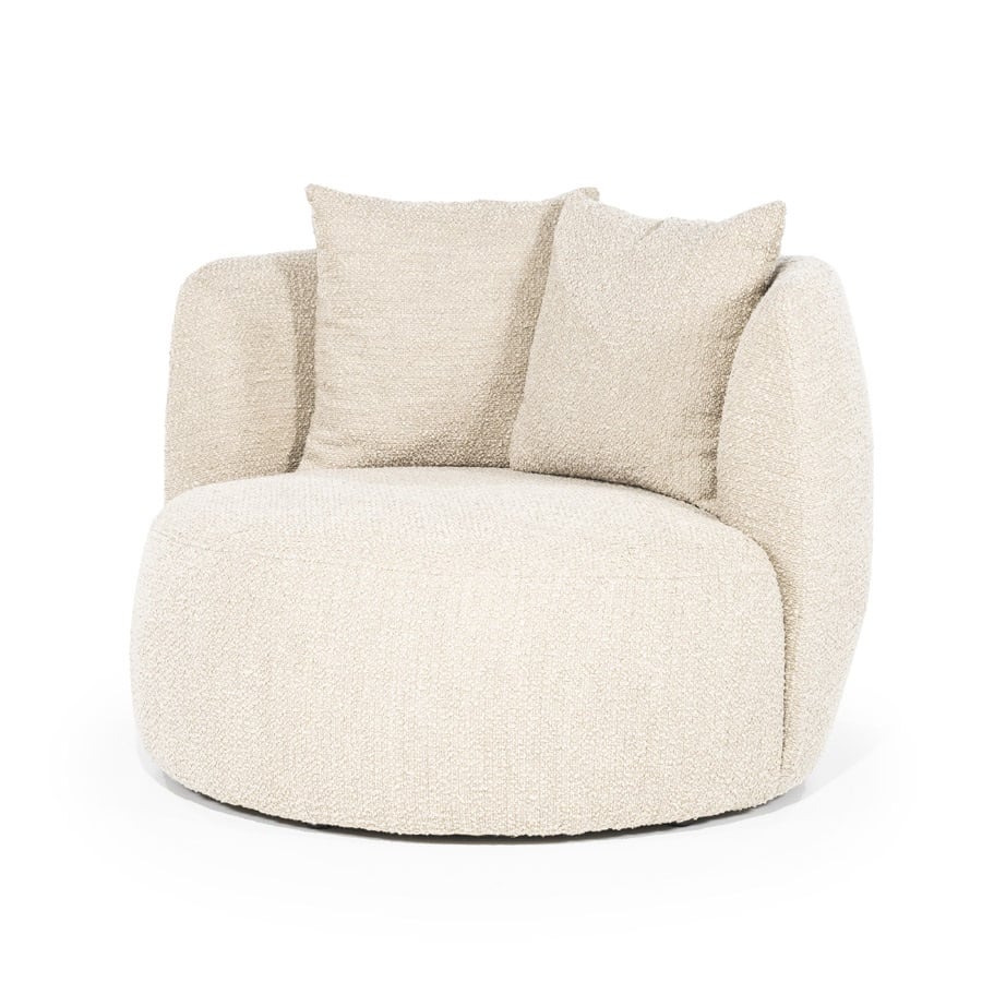 De fauteuil Louis van Eleonora is een heerlijke relax fauteuil om na een lange dag werken neer te ploffen. De zachte bouclé stof Spark voelt heerlijk zacht aan en dankzij de 2 bijgeleverde kussens kun je er verschillende kanten mee op.