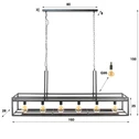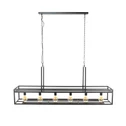 Deze hanglamp is voorzien van een rechthoekig metalen frame met een charcoal finish. De 6 lichtbronnen hangen mooi in één lijn in het frame, waardoor er voldoende licht boven de tafel en in de ruimte is. Sfeervol en efficiënt. De lamp beschikt namelijk aan beide kanten over ruimte waaraan wijnglazen gehangen kunnen worden. Daarnaast is er bovenop de lamp ook nog ruimte om spullen te plaatsen. Deze lamp is dus super geschikt boven een keuken of een eetkamertafel. Er wordt aanbevolen LED lichtbron (8466) te gebruiken.