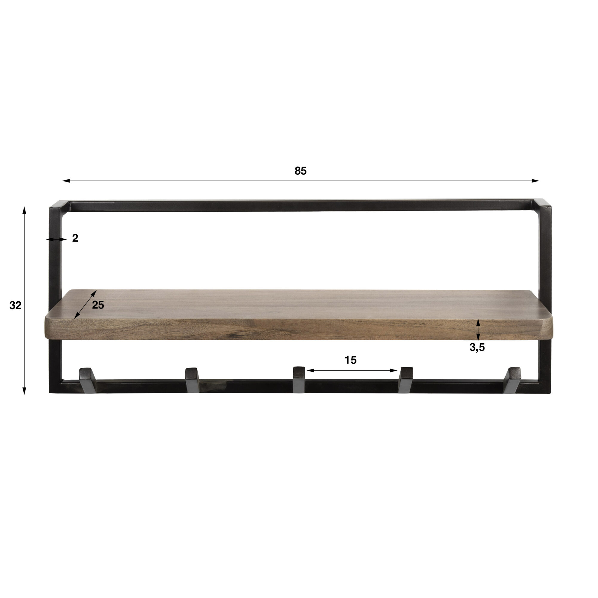 Kapstok Air Pure Acaciahout met 5 haken
