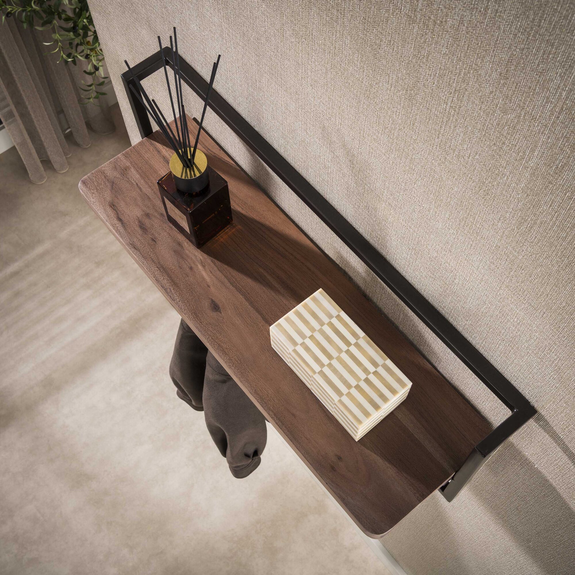 Kapstok Air Solid heeft zes haken en een hoedenplank, uitgevoerd in acaciahout met een warme bruine finish. Het strakke metalen frame in bronze kleur geeft het ontwerp een moderne uitstraling en maakt de kapstok geschikt voor de hal of entree. De kapstok wordt eenvoudig en stevig aan de wand bevestigd via twee ophangoogjes. Dankzij het compacte formaat kan dit model als voordeliger pakket worden verzonden. Deze kapstok maakt deel uit van de Air Solid‑serie.