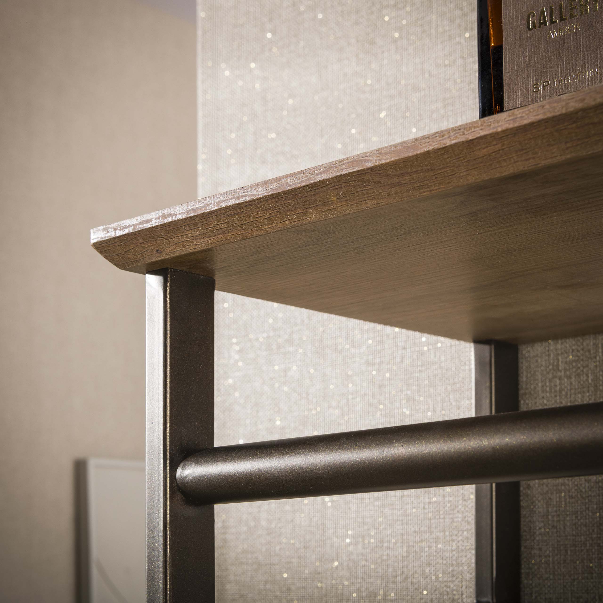 | Materiaal | Stalen frame gepoedercoat in brons en eikenhoutlook plank |