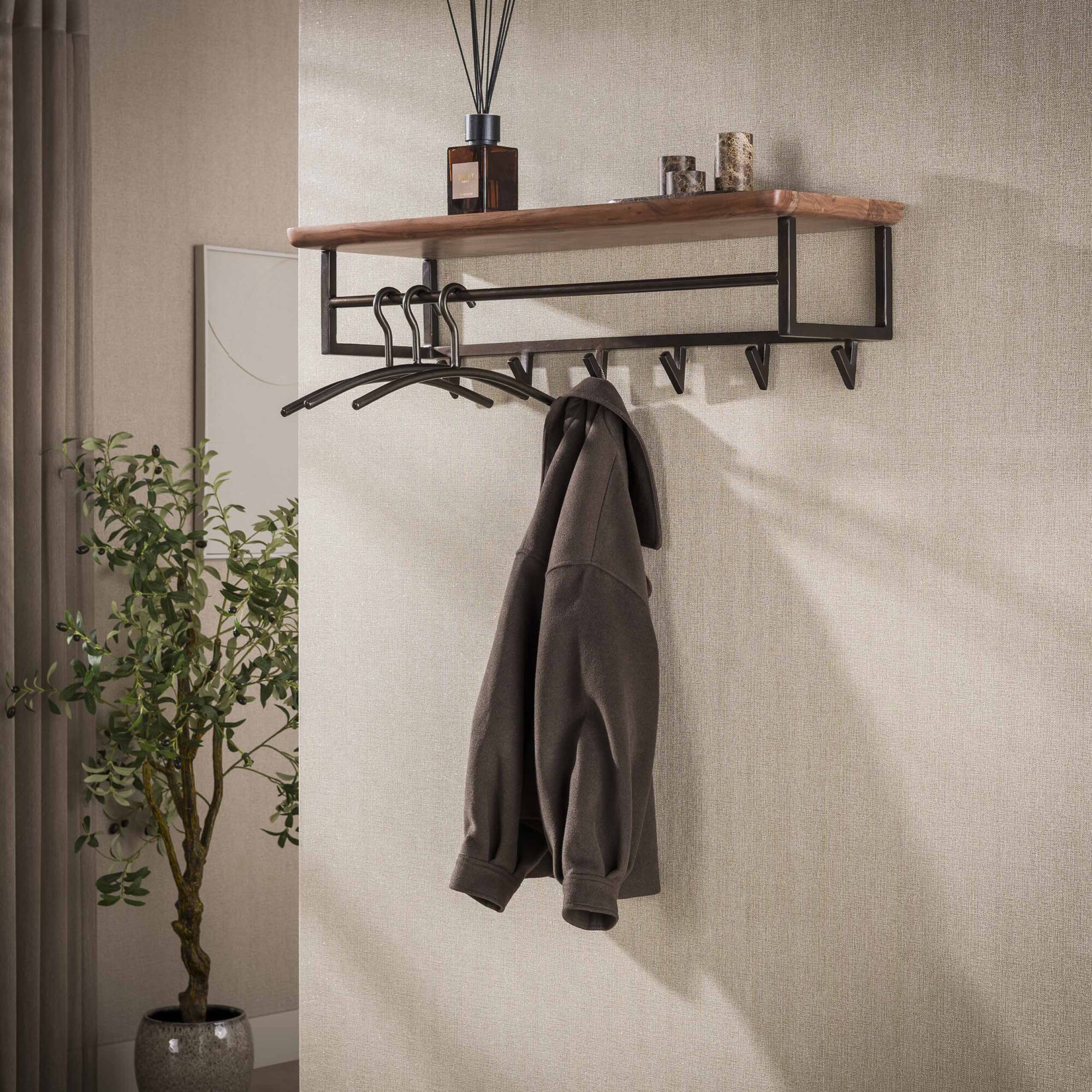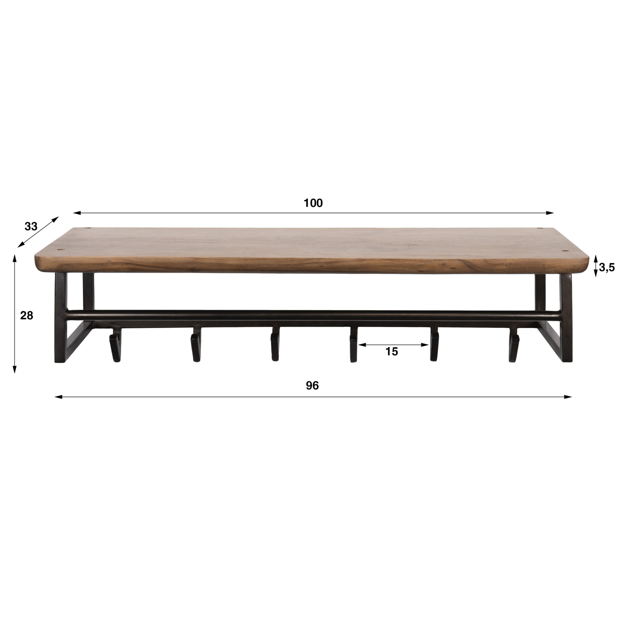 Kapstok Edge Curve Acaciahout, Met 6 haken en plank