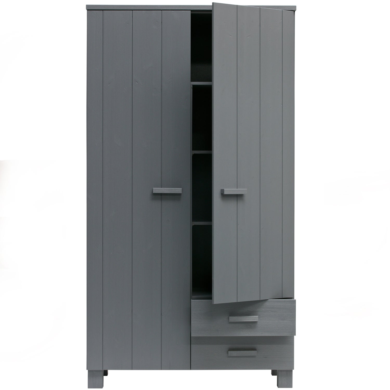 Home Merken Woood WOOOD Kasten Kledingkast Dennis 2-deurs en 2 lade – Steel Grey