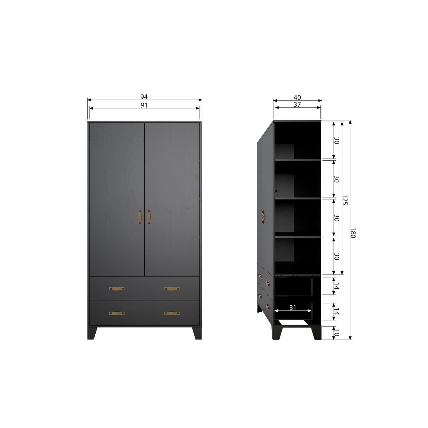 Kledingkast Dian 180 x 94cm, kleur Diep Zwart