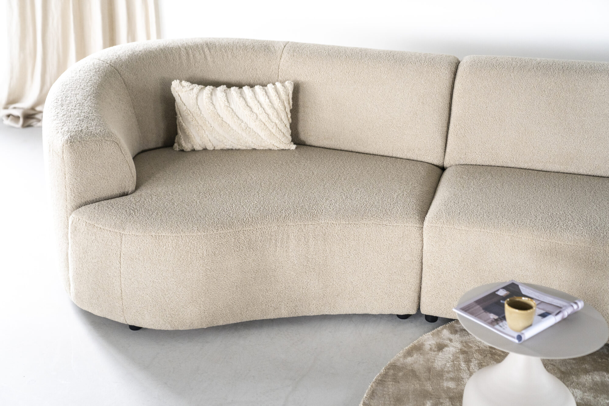 Het uitnodigende karakter van Denise laat je meevoeren in je dagdromen en zorgt ervoor dat je niet meer van de bank af wil komen. Haar organische vormen en verleidelijk volumineuze design geven je een warm en omarmend gevoel. In een lekkere zachte teddy stof is zij al helemaal onweerstaanbaar.