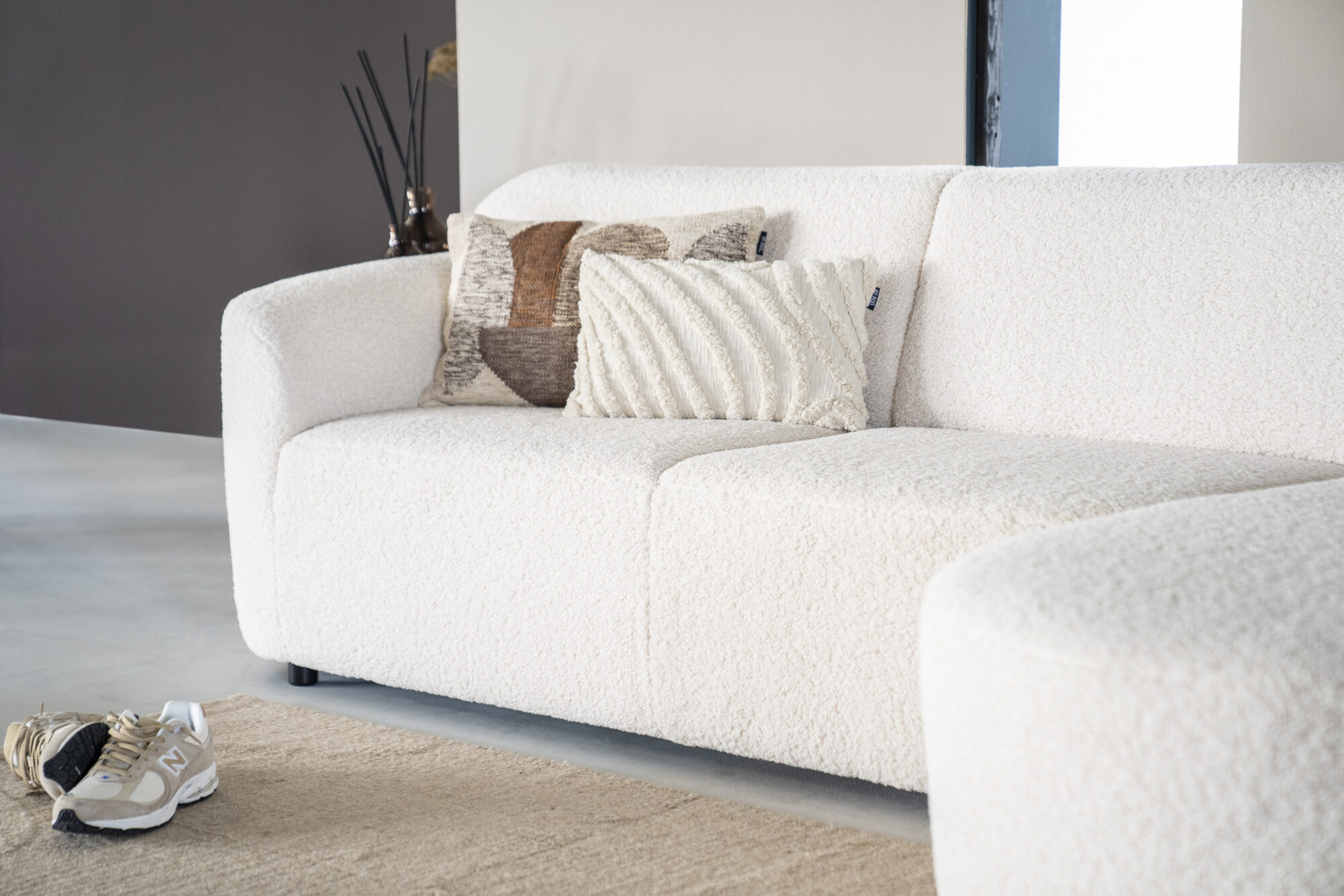 Een knusse bank is het uitgangspunt van Ovie. Maar wie denkt dat knus ook klein betekent heeft het mis. Het zijn namelijk de ronde vormen en brede armleuning die zorgen voor die knusse uitstraling. Ovie bestaat namelijk uit wel 20 verschillende elementen waarmee jij zelf zo groots of juist compact uit kunt pakken als je zelf wilt. Voor een extra knusse en uitnodigende bank kun je kiezen voor een teddystof