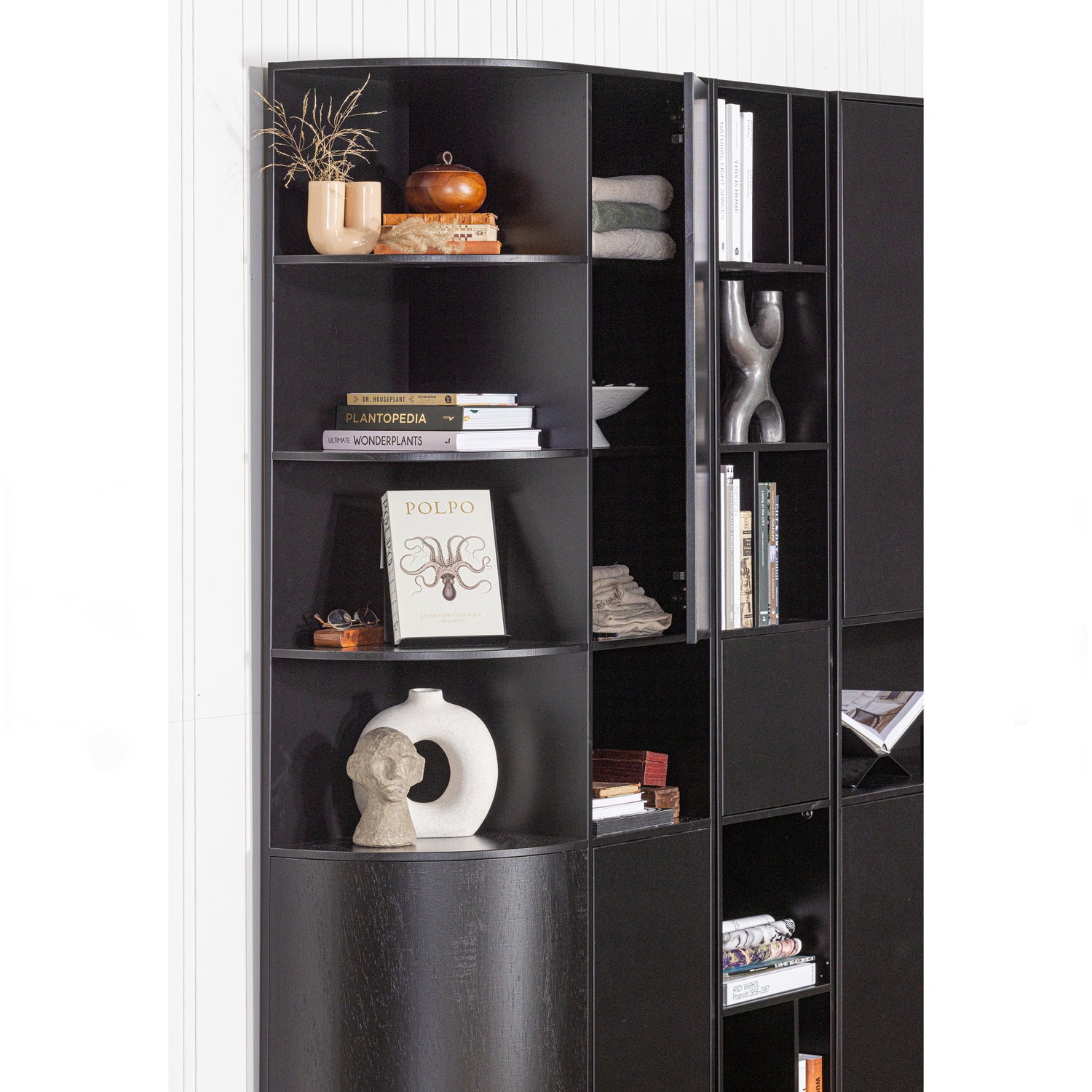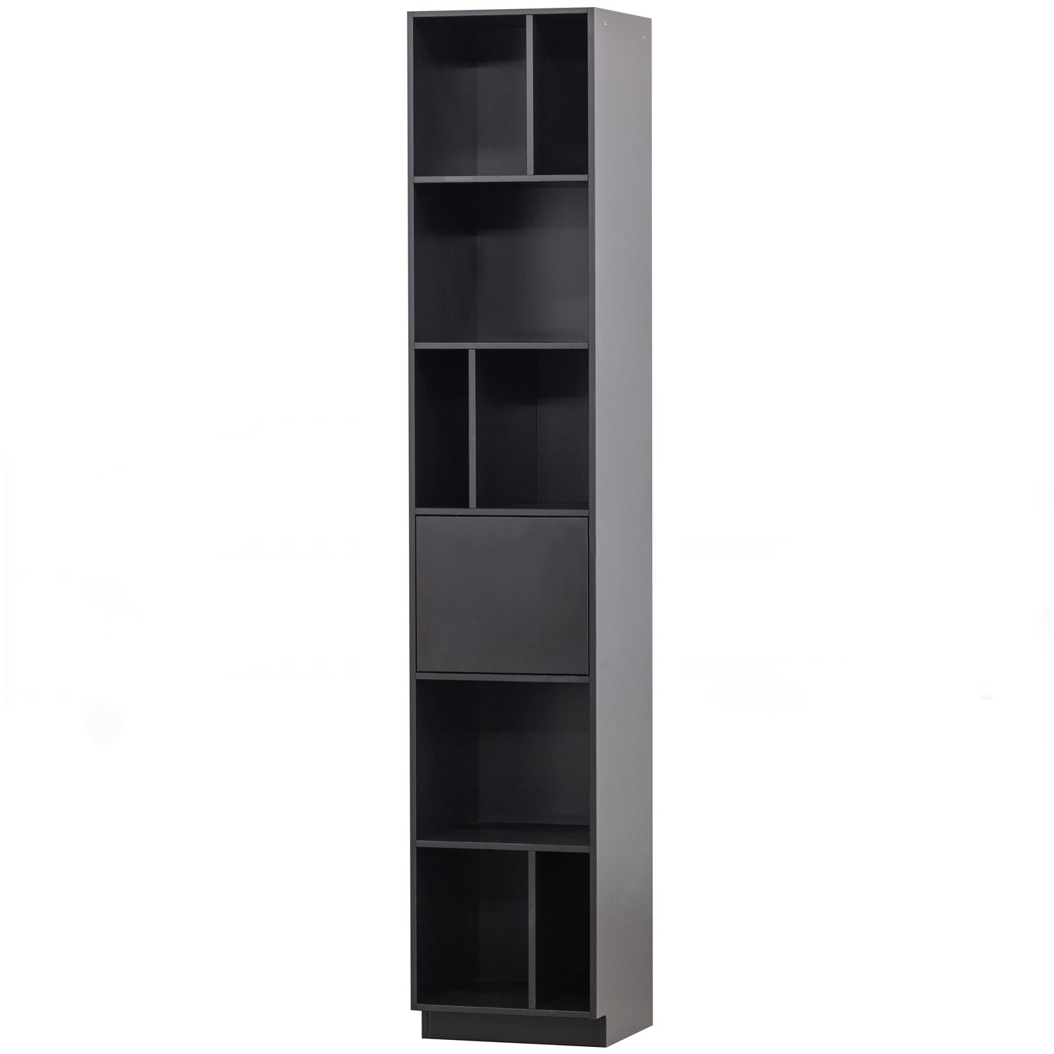 Met een hoogte van 210 cm en een breedte van 40 cm, biedt deze kast een zee aan opbergruimte zonder te overheersen. Het innovatieve push-to-open systeem zorgt ervoor dat je moeiteloos toegang hebt tot je spullen, terwijl het strakke design zonder handgrepen de rust in je ruimte bewaart. De speels ingedeelde open vakken zijn perfect om je mooiste decoraties te etaleren, terwijl het deurtje je minder fraaie spullen uit het zicht houdt.