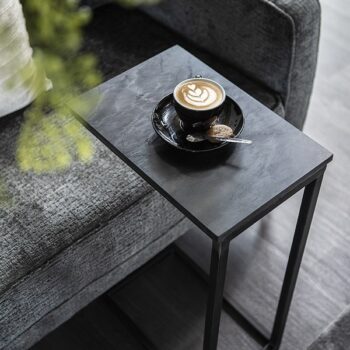 Deze trendy salontafel set van 2 in een driehoekige vorm is uitgevoerd in ‘metallic’ zwart. Op het blad zit een hele mooie bewerking welke een unieke uitstraling geeft. De tafels kunnen naar eigen inzicht speels bij elkaar neergezet worden. Deze set is een echte eye-catcher en maakt deel uit van de ‘metallic’ serie