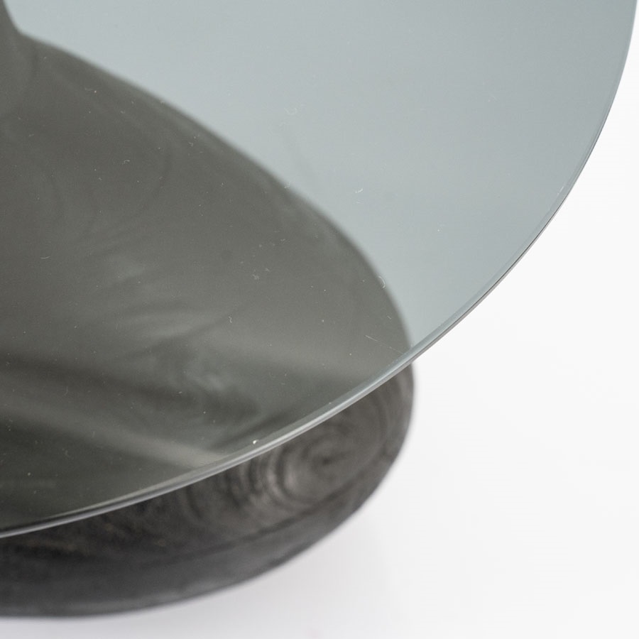 Home Tafels Bijzettafels Ronde Bijzettafel Bond Hout en glas – 50 cm – Zwart