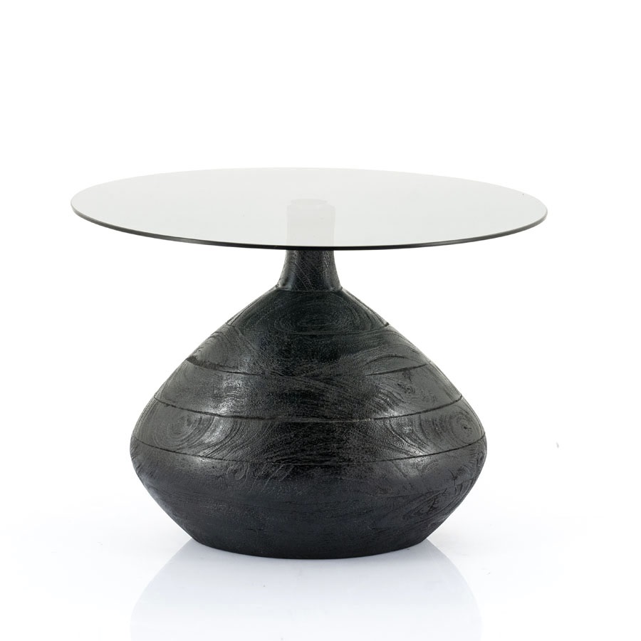 Ronde Bijzettafel Bond Hout en glas – 50 cm – Zwart