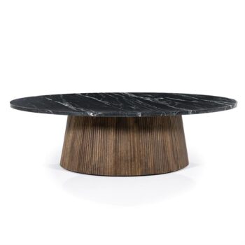 Met zijn robuuste eikenhout straalt hij kracht en elegantie uit, terwijl de diepe zwarte tint een vleugje mysterie toevoegt aan je interieur. De 90 cm diameter biedt genoeg ruimte voor al je woonaccessoires, van kaarsen tot magazines. En dankzij het tijdloze design past hij moeiteloos in elke woonstijl, of je nu houdt van modern minimalisme of een knusse boho-sfeer.