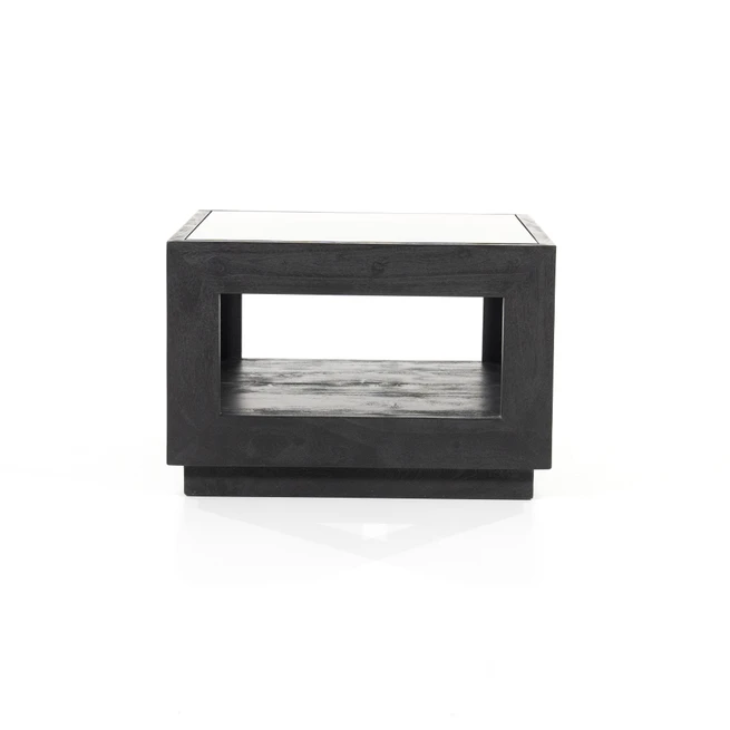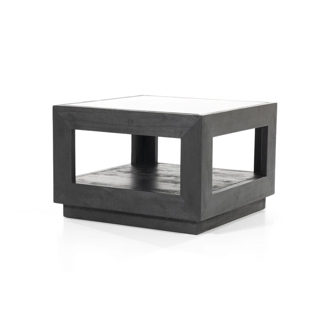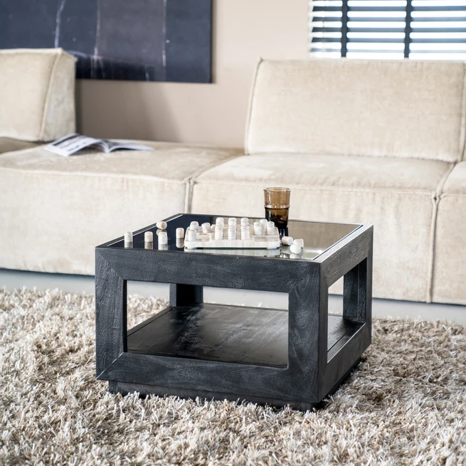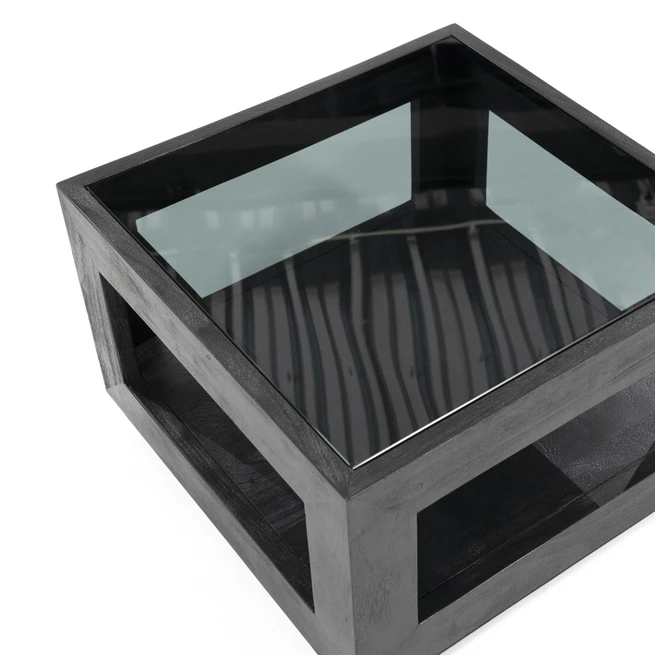 Salontafel Liam Mangohout en Glas – Zwart 60 x 60 cm (showmodel)