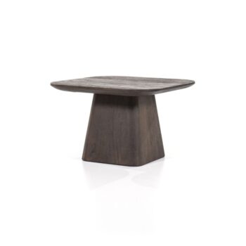 Aron is gemaakt van donker mangohout. De dikte van het tafelblad loopt af waardoor er een rustige sfeer ontstaat. Ook de poot is gemaakt van mangohout. Hierdoor onstaat één mooi geheel.
