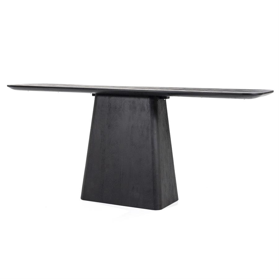 Aron is gemaakt van donker mangohout. De dikte van het tafelblad loopt af waardoor er een rustige sfeer ontstaat. Ook de poot is gemaakt van mangohout. Hierdoor onstaat één mooi geheel.