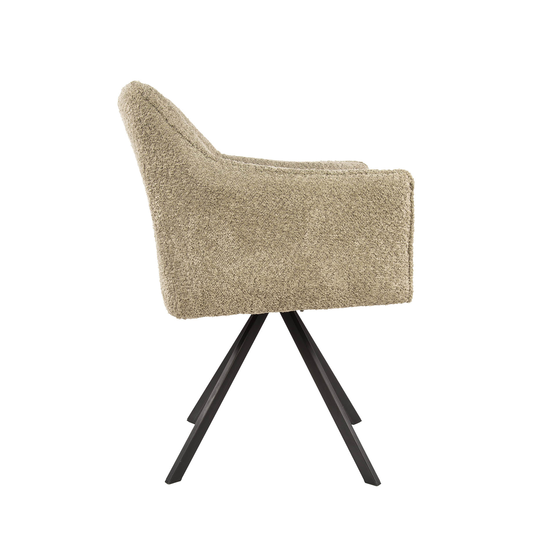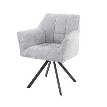 Deze eigentijdse armstoel is uitgevoerd in Bouclé. De stoel beschikt over een hele comfortabele zitting en is voorzien van een draaimechanisme. Deze stoel geeft aan ieder huis een chique en trendy look. De stoel is verpakt per 2 stuks en is uitgevoerd in meerdere varianten.