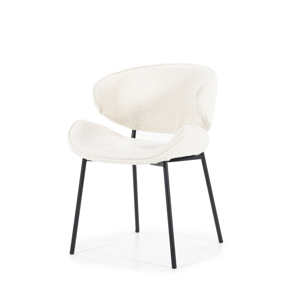 Stoel Tess is nieuw in de collectie van Eleonora. De eetkamerstoel Tess heeft een Scandinavisch uiterlijk dankzij haar ergonomische vormen in combinatie met de Spark bouclé stof.
