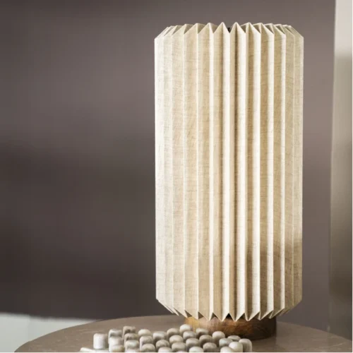 Maak kennis met de betoverende Zuki tafellamp, een meesterwerk van verlichting en design. Deze unieke lamp is vervaardigd met zorgvuldig geselecteerd linnen papier en hout, wat resulteert in een subliem stuk dat zowel functioneel als esthetisch verbluffend is.