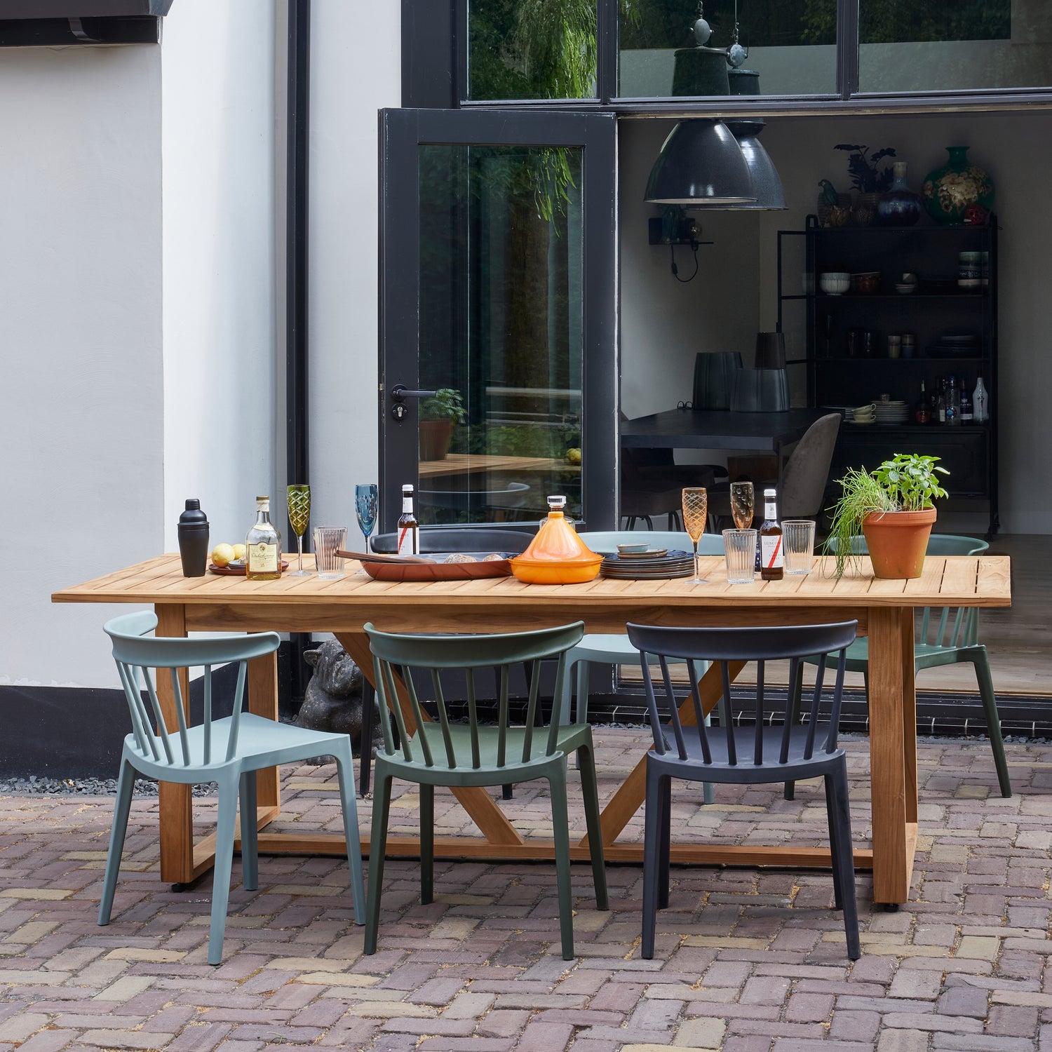 Of je nu een zomerse barbecue organiseert of een gezellige indoor brunch, de Bliss stoel is er klaar voor. Dankzij het weerbestendige materiaal trotseert hij moeiteloos regen en zonneschijn, terwijl hij zijn charme behoudt. En met een zithoogte van 44,5 cm en een maximale draagkracht van 150 kg, biedt hij comfort voor iedereen.