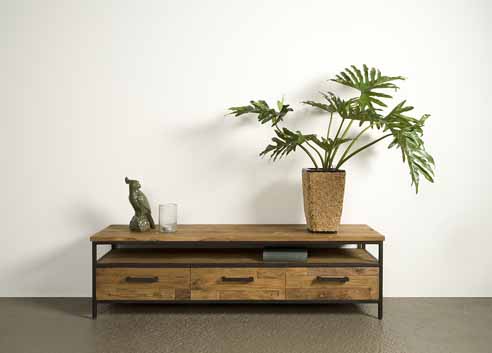 | Materiaal | Gecoat staal met vintage afwerking gecombineerd met massief gerecycled teakhout |