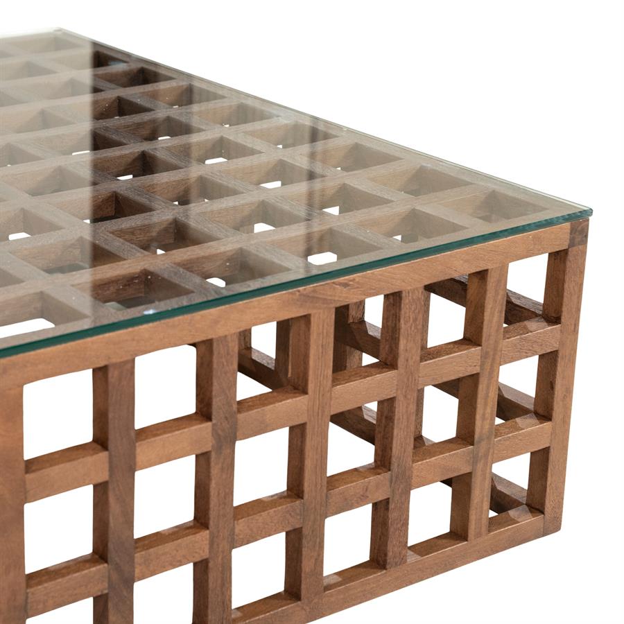 Home Tafels Salontafels Alle salontafels Vierkante Salontafel Heras Mangohout en glas 90 x 90cm