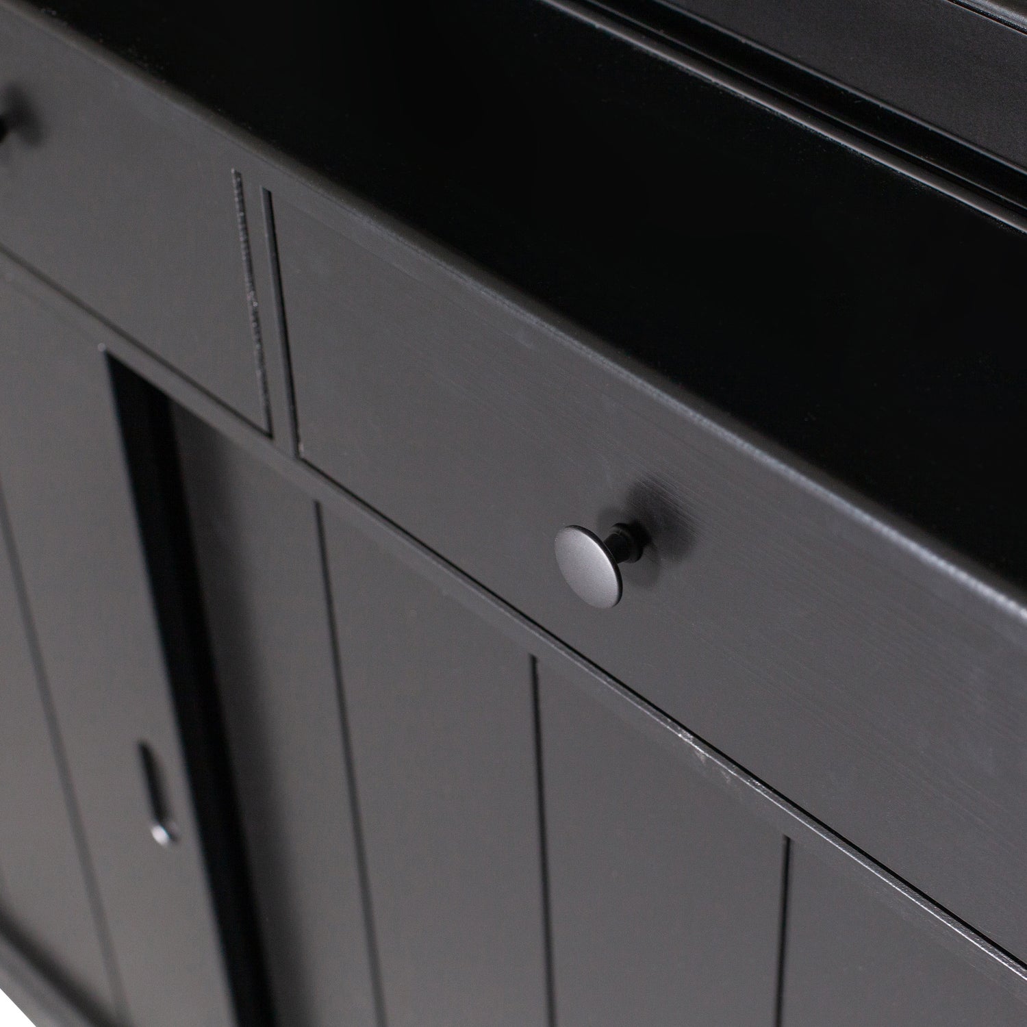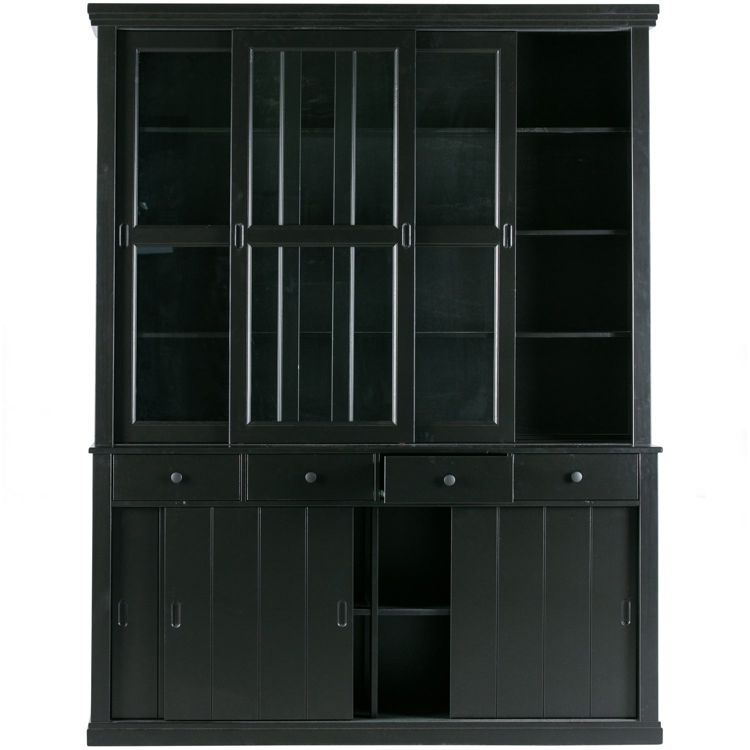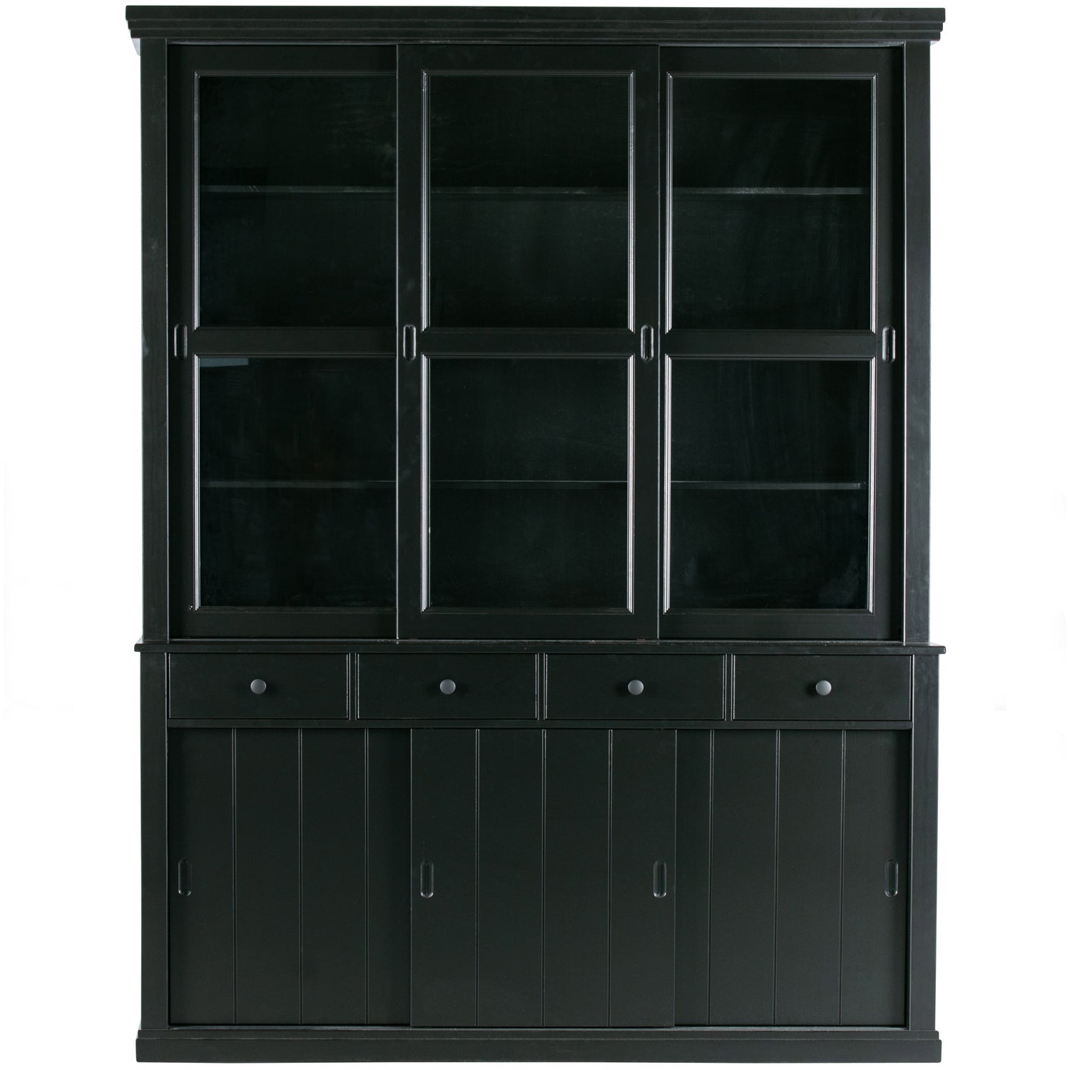 - Voorzien van vier lades, drie dichte schuifdeuren en drie glazen schuifdeuren