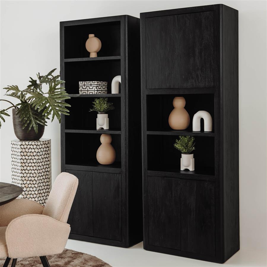 Home Kasten Wandkasten & Wandrekken Hotel chique wandkasten Wandkast Tenna Mangohout met 2 open vakken 220 x 80 cm – Zwart