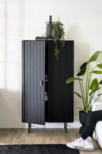 Met een zwarte wandkast zijn de interieur mogelijkheden eindeloos. Je kunt de wandkast gebruiken om boeken en woonaccessoires te tonen, maar het is ook ideaal voor wat extra opbergruimte. Het biedt niet alleen functionaliteit, maar kan ook worden gebruikt als een stijlelement om accenten aan te brengen in een ruimte. Wat dacht je van een lage wandkast in de hal als eerste indruk die je gasten krijgen wanneer ze je huis betreden? Een perfecte plek om sleutels, sjaals en hoeden op te bergen. Kortom, de mogelijkheden zijn eindeloos.