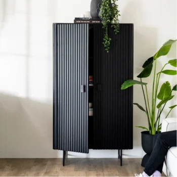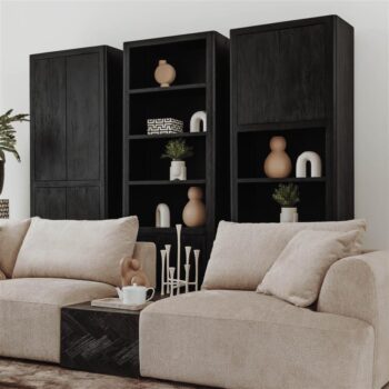 Met een zwarte wandkast zijn de interieur mogelijkheden eindeloos. Je kunt de wandkast gebruiken om boeken en woonaccessoires te tonen, maar het is ook ideaal voor wat extra opbergruimte. Het biedt niet alleen functionaliteit, maar kan ook worden gebruikt als een stijlelement om accenten aan te brengen in een ruimte. Wat dacht je van een lage wandkast in de hal als eerste indruk die je gasten krijgen wanneer ze je huis betreden? Een perfecte plek om sleutels, sjaals en hoeden op te bergen. Kortom, de mogelijkheden zijn eindeloos.
