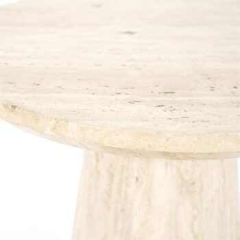 De tafels zijn in heel geheel afgewerkt in natuursteen Travertin. Hierdoor vormt het één natuurlijk geheel. Travertin brengt warmte aan je interieur. De Eleonora Aime tafel past zeer goed bij een steilde woonstijl of scandinavisch interieur.
