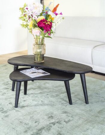 Deze organische vormen zijn afgeleid uit de natuur. Je kunt hierbij denken aan zachte vormen van planten, stenen en wolken. De lijnen van de organische bijzettafels zijn opgebouwd uit cirkels en krommingen die vloeiend en geleidelijk een vorm weergeven.