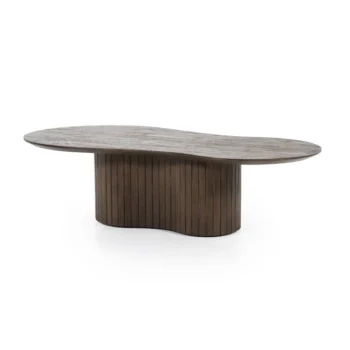 Mangohout staat bekend om zijn duurzaamheid en unieke nerfpatronen, wat elke tafel een karakteristieke uitstraling geeft. Het is ook milieuvriendelijk, omdat het afkomstig is van de mangoboom, die na het oogsten weer aangroeit.