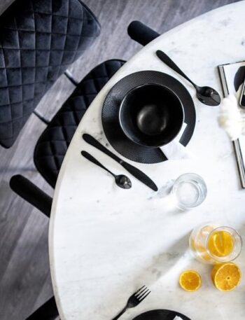 Nadat je de ideale marmeren eettafel hebt gekozen is het tijd voor de styling. Het belangrijkste onderdeel is natuurlijk een set eetkamerstoelen. We zien vaak terugkomen dat mensen kiezen voor eetkamerstoelen met een luchtig design zodat de tafel echt de eyecatcher is, maar dat is aan jou! Wil je je marmeren eettafel echt compleet maken? Denk dan aan een mooie vaas of een set stijlvolle kaarsen. Ook een laagpollig vloerkleed onder de eettafel kan de tafel extra laten opvallen. Bij Loft24 vind je al deze accessoires die je eetkamer helemaal afmaken.