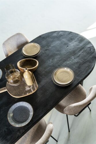 Ovale eettafels bieden een praktische en stijlvolle oplossing voor de eetkamer. Ze combineren de ruimte-efficiëntie van rechthoekige tafels met de gezelligheid van ronde tafels. Door het ontbreken van scherpe hoeken zijn ze veiliger met bijvoorbeeld kinderen en bieden ze een gezellige zitervaring voor iedereen aan tafel. Bovendien zorgen de afgeronde zijden voor een natuurlijke en zachte uitstraling, waardoor de tafel minder hard oogt en mooi in de ruimte past.