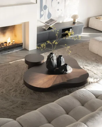 Bruine salontafels in verschillende vormen en maten