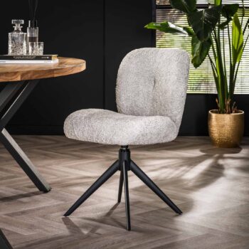 Bij Loft24 vind je teddy en bouclé eetkamerstoelen in allerlei uitvoeringen. Denk aan draaibare modellen voor extra gemak, stoelen met een metalen onderstel voor een stoere look of juist houten poten voor een natuurlijke uitstraling. Verkrijgbaar in zachte, neutrale tinten zoals wit, beige en bruin.
