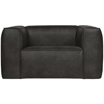 Heb je een industriele woonstijl met een cognac kleurige bank dan past daarbij een leren fauteuil in dezelfde kleur. Een zwart leren fauteuil kan ook een optie zijn. Het materiaal leer is namelijk goed te combineren met het vele hout en zwarte staal.